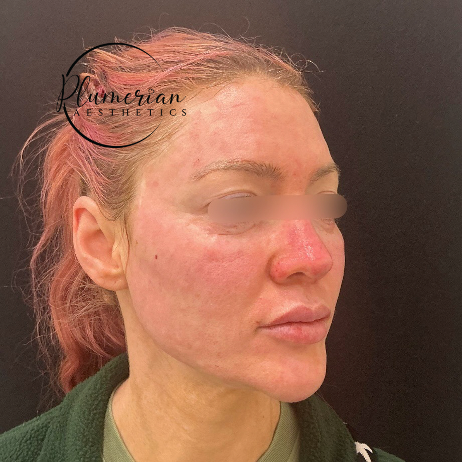 This photo shows what this client's face looked like immediately after her Rejuran & Platelet Treatment. Mild swelling, redness, and small raised bumps (particularly where Rejuran was injected) are completely normal straight after treatment. Some clients may also experience light bruising, especially around more delicate areas. These effects typically subside within 24–48 hours. However, everyone’s skin responds differently — while some may notice minimal downtime, others might experience a little more visible swelling or bruising. This is all a normal part of the healing process and will settle as the skin begins to repair and rejuvenate.